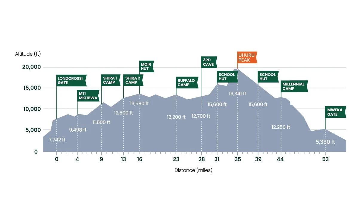 Our team will follow the Lemosho Route along the mountain’s northern circuit. As Kilimanjaro’s longest route, our teams have an excellent chance to fully acclimatize to the altitude. During our climb the team will be fully supported by Endeavor’s leaders and more than 50 local staff members including guides, porters, cooks, and other staff.
